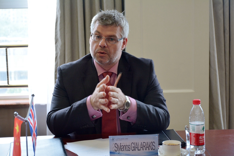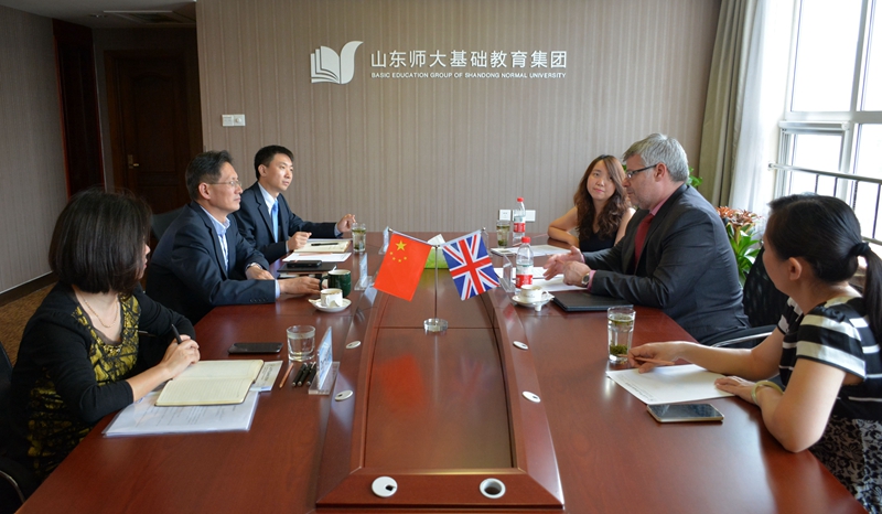 5月17日,英国南柴郡学院(South Cheshire College)国际部负责人Stylianos GIALARAKIS到山东师大基础教育集团交流访问。山东师大基础教育办公室主任、基础教育集团常务副理事长、总经理苗禾鸣亲切会见了客人。
