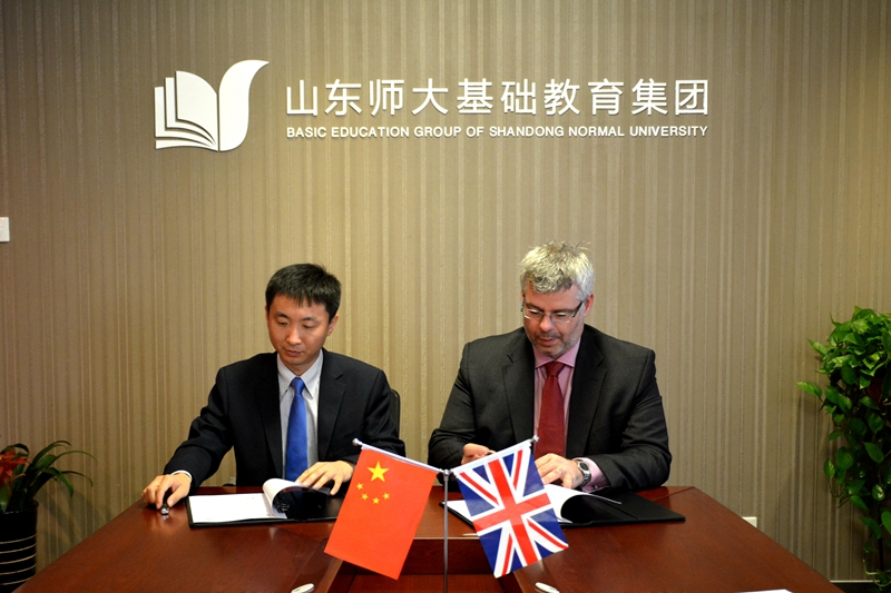 会谈期间,集团对外合作部副部长张光,代表集团与Stylianos GIALARAKIS签署了山东师大基础教育集团与英国南柴郡公学合作备忘录。