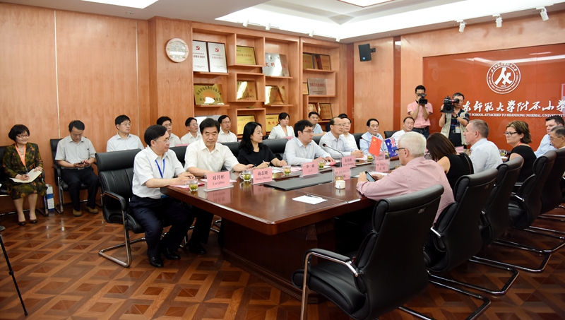 魏杰州长感谢山东师大附小师生的热情接待,对附小先进的教育理念、卓越的办学成果,特别是创建特色课程体系、打造信息化国际化品牌学校的发展思路给予高度评价。他希望山东师大附小发挥自身优势与特色,支持南澳州正在规划建设的双语学校,以此向山东省与南澳州缔结友好省州30周年献礼。