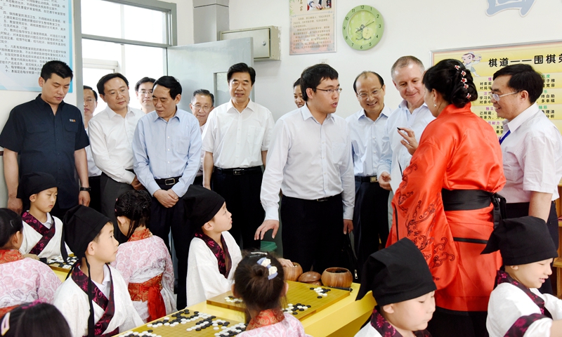 会见结束后,双方就基础教育工作进行了深入交流,并交换纪念品。访问团还参观了附小学术会堂、机器人工作室、微格教室、围棋教室等功能教室。附小完善的硬件设施、优雅的校园文化及良好的师生素质给访问团留下了深刻印象。
