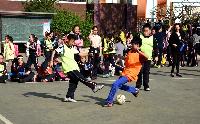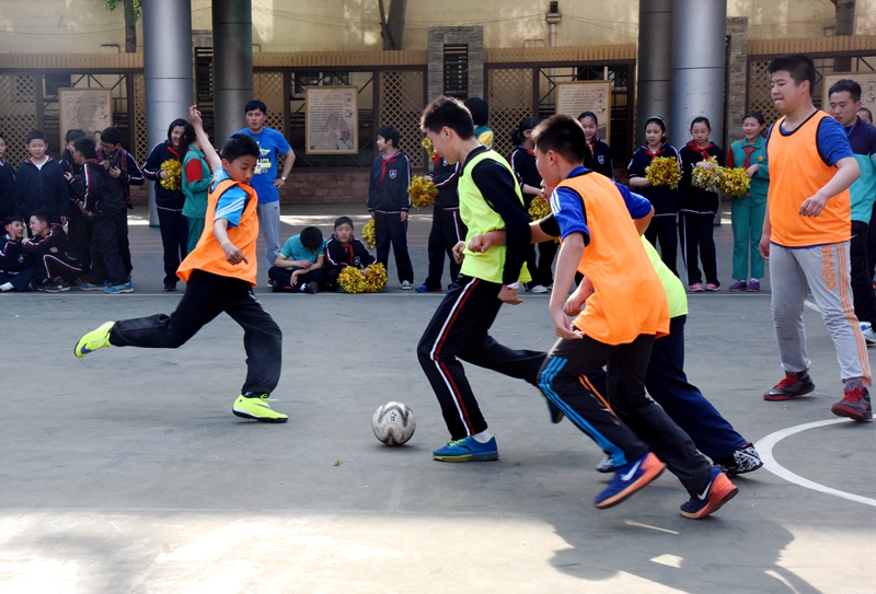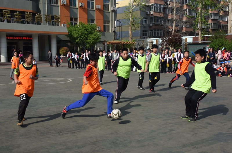 最后,校长、党总支书记刘其彬与济南市足球运动管理中心副主任隋建明一同为足球比赛开球,我校2015年度足球赛在紧张、激烈的气氛中正式拉开帷幕。学校将以此次活动为契机,将足球联赛定为每个学期的固定活动,使足球运动成为校园活动必不可少的一部分。