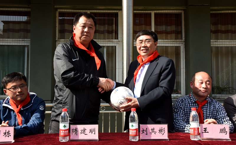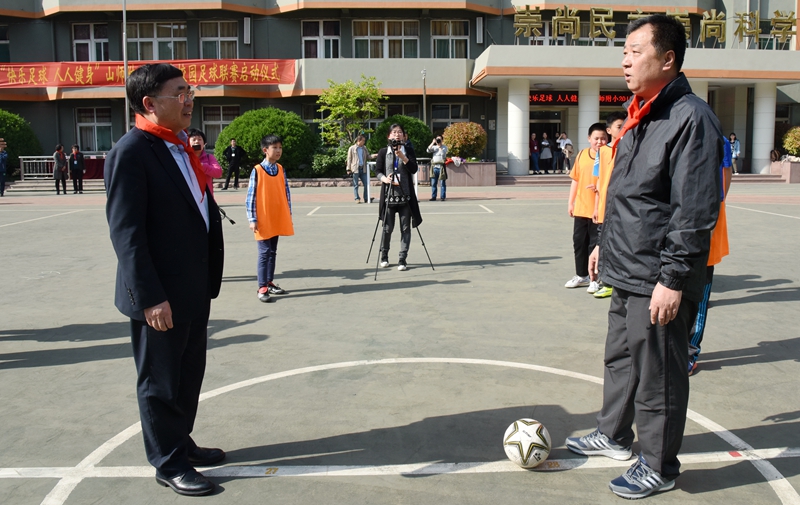 校长、党总支书记刘其彬与济南市足球运动管理中心副主任隋建明为比赛开球