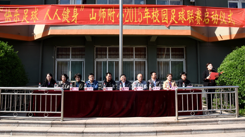 2015年4月15日下午三点,山东师范大学附属小学2015年度校园足球联赛全面启动,本次足球联赛活动覆盖全校低中高不同学段的各个班级。济南市足球运动管理中心副主任隋建明、山师附小校长、党总支书记刘其彬、济南市足球运动管理中心竞训科科长郑国栋、历下区教育局教育科副科长王鹏、山师附小副校长刘松、山师附小副校长肖宝民、党总支副书记张宁、本部执行校长任丽华、本部德育副校长盖莹、第三届家委会文体部部长谢鲁峡出席活动启动仪式。学生代表为参加本次活动的领导及来宾敬献红领巾。