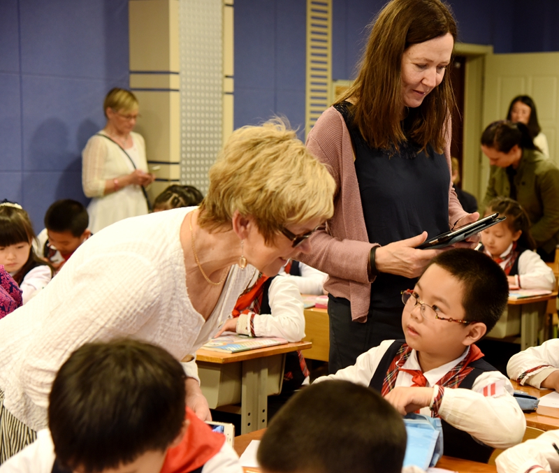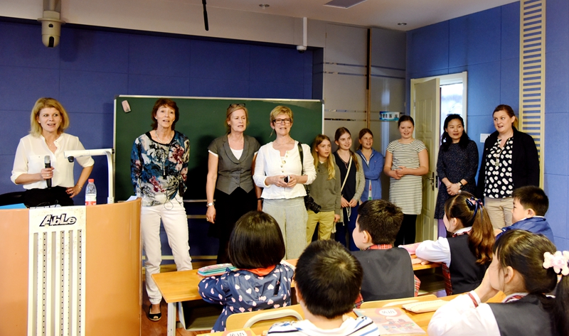 4月22日上午,访问团主要进行阿特拉斯项目交流活动,中、瑞双方针对数学、英语、国画等课程展开教学研讨。济南市小学英语学科教研员王亚春、历下区教育局小学教研室副主任谢群、副校长刘松、本部执行校长任丽华参加活动。