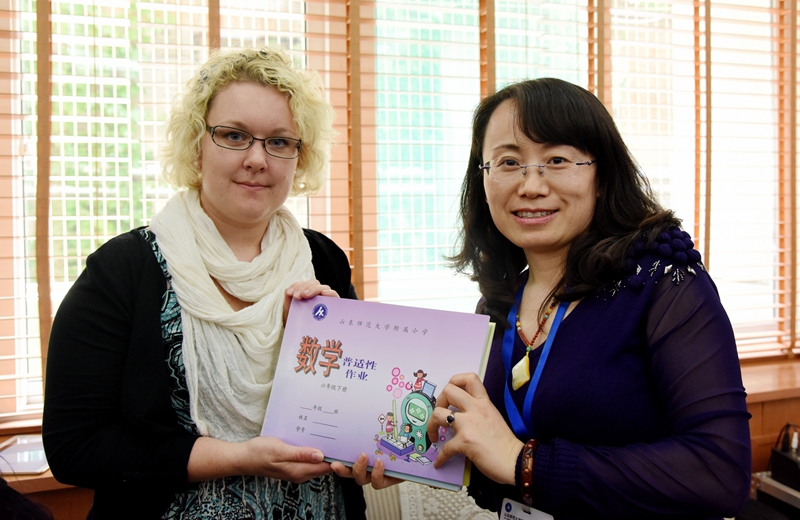 本部副校长曲淑华向外宾赠送我校特色作业