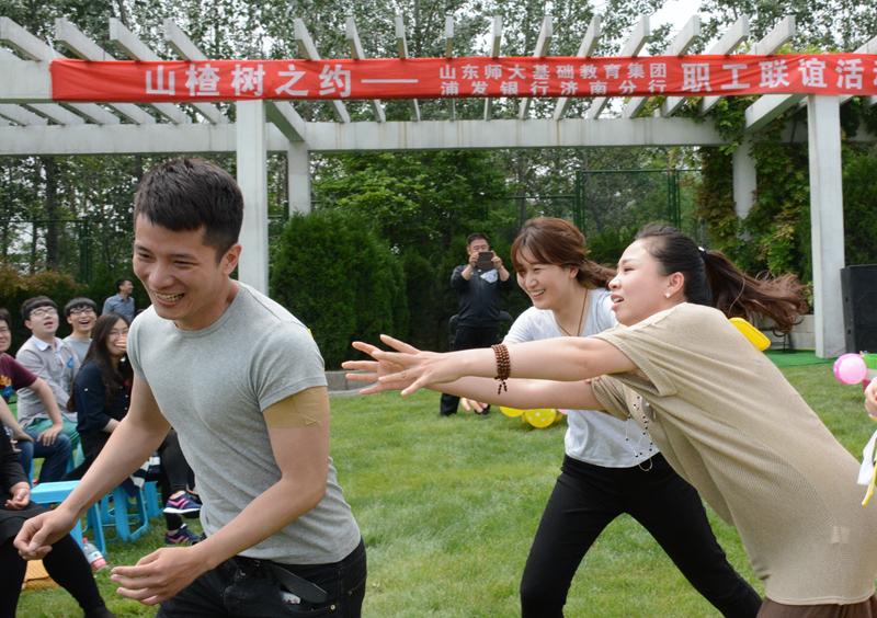 5月,是青年人的节日。在这充满生机的美好时节,由山东师大基础教育集团和浦发银行济南分行共同举办的“山楂树之约”职工联谊活动在济南植物园南临的天怡养生园举行。山东师大基础教育集团总经理苗禾鸣、浦发银行济南分行工会主席靳佩然等相关同志和两家单位的60余名青年职工共同出席本次活动。