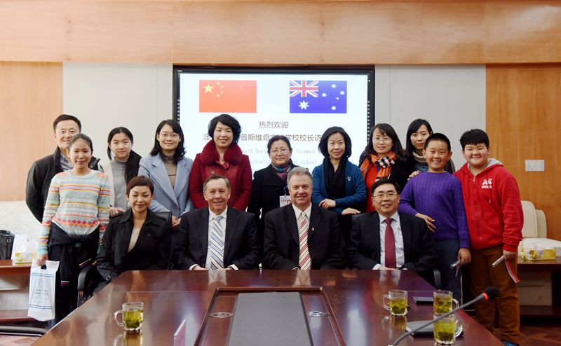 3月11日上午,澳大利亚布里斯班伊普斯维奇文法学校(男校)校长罗伯特·亨德森先生,伊普斯维奇女子文法学校校长彼得·布瑞腾先生,克雷菲尔学校杰西卡女士,克雷菲尔学校驻中国代表崔东海先生一行四人到附小参观访问,受到附小全体师生的热烈欢迎。