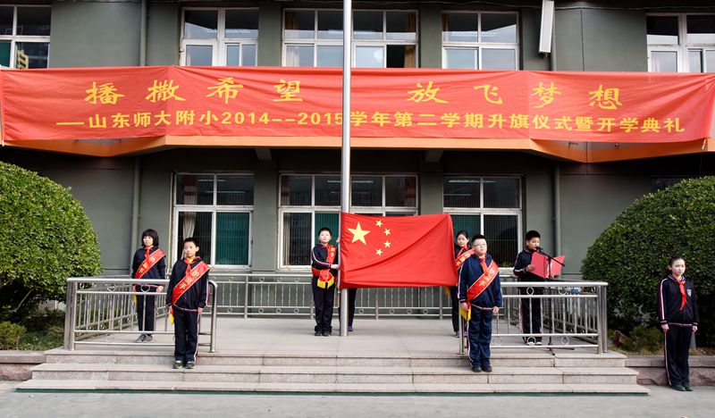 2015年3月9日上午,山东师大附小2014-2015学年度第二学期的开学典礼暨升旗仪式在学校操场隆重举行。校长、党总支书记刘其彬,副校长刘松,副校长肖宝民,党总支副书记张宁,校长助理刘贵华等出席活动,本部全体师生参加了开学典礼。