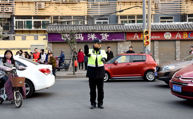 交警指挥车辆有序通过