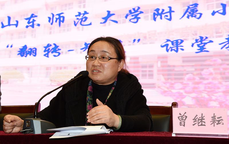 课堂教学展示结束后,山东师范大学教育学院教授曾继耘作了点评发言。曾教授谈到了翻转课堂教学的五大优势,同时还提出了翻转课堂需要思考的五个问题:翻转课堂对教师要求的提高;研究学生两极分化问题,关注弱势群体;关注错时预习,减轻学生负担;关注学科、学习内容的差异;关注学生的个性化学习。校长助理、教学研究中心主任刘贵华主持了活动。