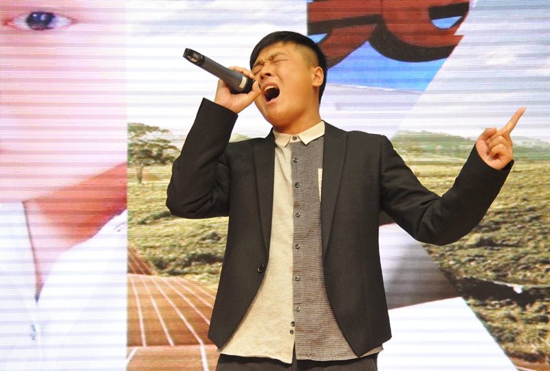 齐鲁学校焦龙带来歌曲《红旗飘飘》