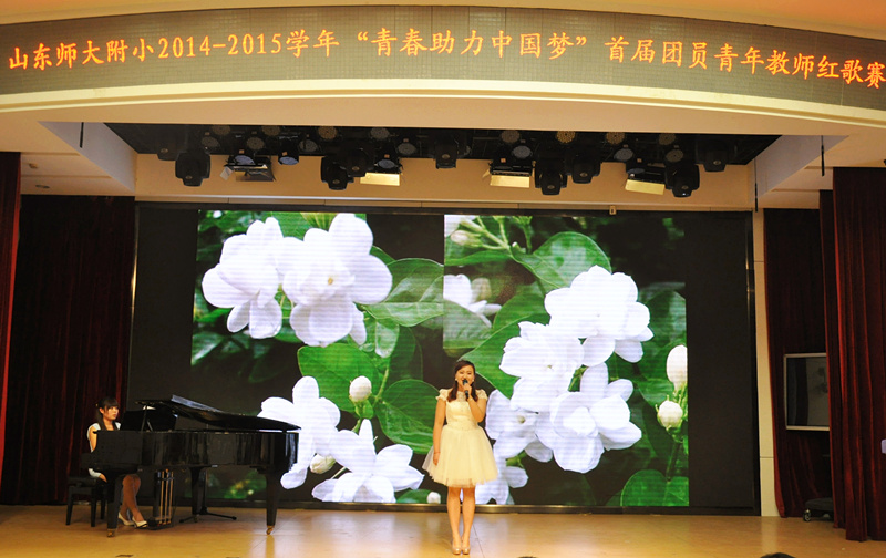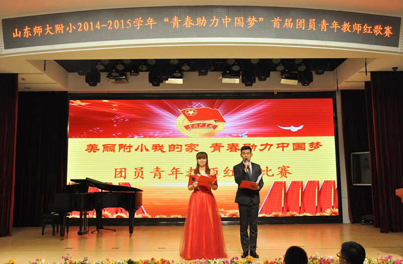 本次大赛首先由各校(园)区团支部举行初赛,各团支部按照团员人数的比例共推出20名团员青年教师参加团总支的决赛。活动中,我们邀请到了学校领导及山东师范大学音乐学院教授李群、宋春燕和黄英一同担当嘉宾评委。本次比赛在校本部学术会堂举行,活动在庄重而热烈气氛中拉开帷幕,各位参赛选手一丝不苟地在做着赛前的精心准备,助威团坐满了会堂。这次红歌赛是团员青年教师们表达对祖国的热爱和展示自己教师职业梦想的舞台,大家看的比什么都重要,能尽情地唱出心中的感动,一定要力求完美。比赛紧张激烈,选手们精美的服装,恢弘的音乐,精彩的表现为观众奉献了一场美轮美奂的视听盛宴,当激昂的音乐在耳边响起,现场洋溢在一片红色之中。