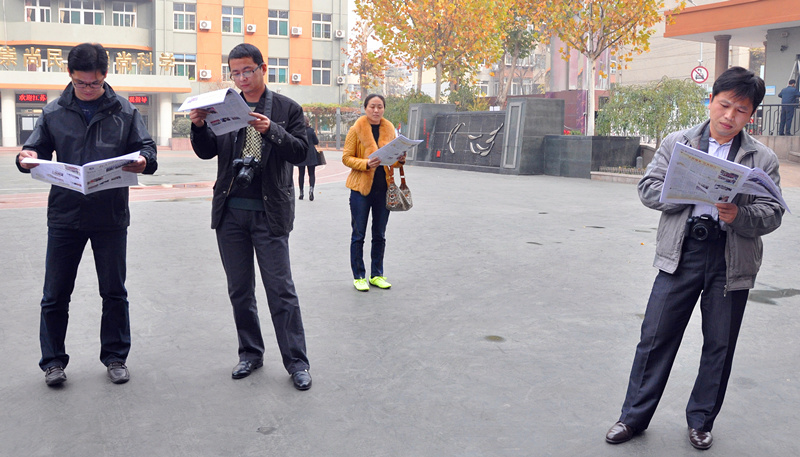 考察团成员认真阅读学校校报