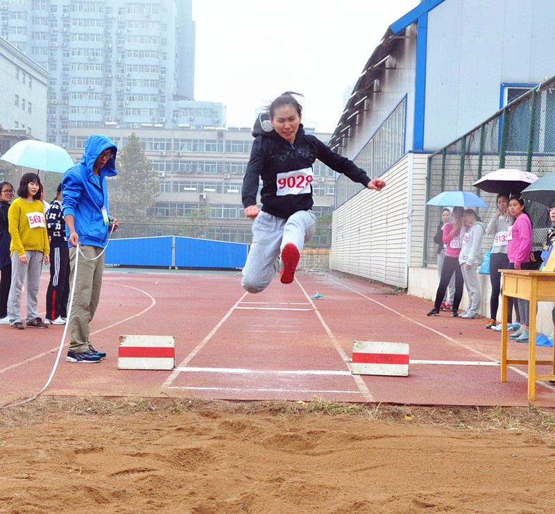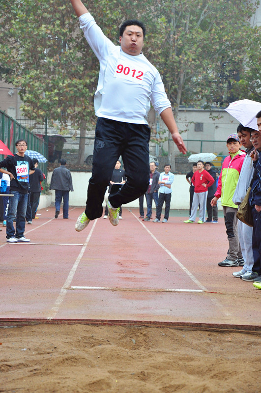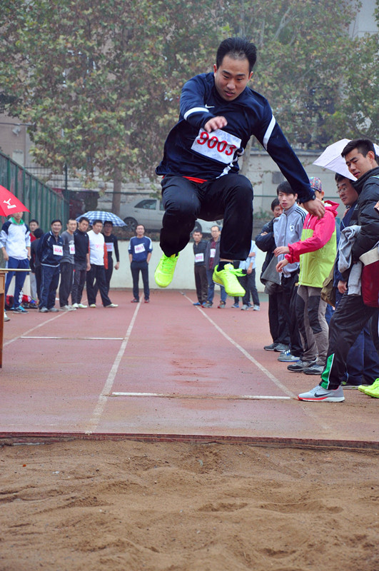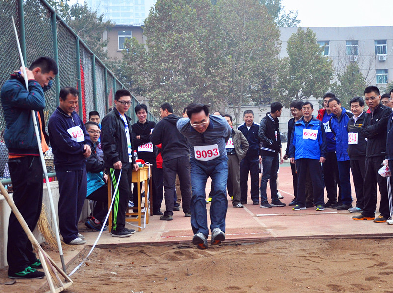 校长、党总支书记刘其彬参加男子丙组跳远项目