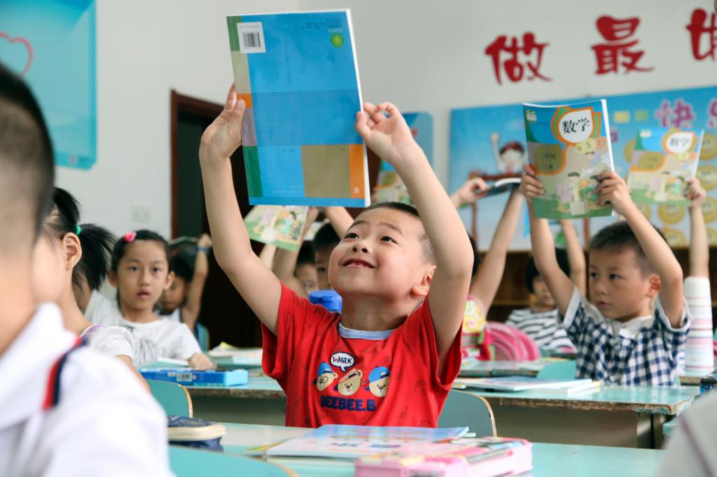 拿到新课本的一年级新生