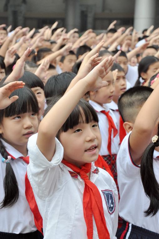 少先队员们向国旗敬礼
