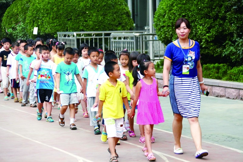 一年级老师带领新生认识校园