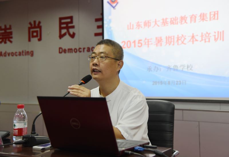 伴着凉爽的秋风,山东师大基础教育集团暑期培训第三天开始了。上午的培训由齐鲁学校教育处主任赵相甲主持。殷永胜校长做了《班级管理艺术》的专题报告。殷校长紧紧围绕影响班级系统的三个隐藏动力(连结、平衡和秩序),和老师们分享了三者对班级管理的重要作用。任何事物都是有能量的。事物彼此之间的连结紧密相连,连结中有内在的秩序和平衡。班主任只有充分挖掘并正确使用这三个隐藏的动力,才能保证班级的和谐与愉悦。