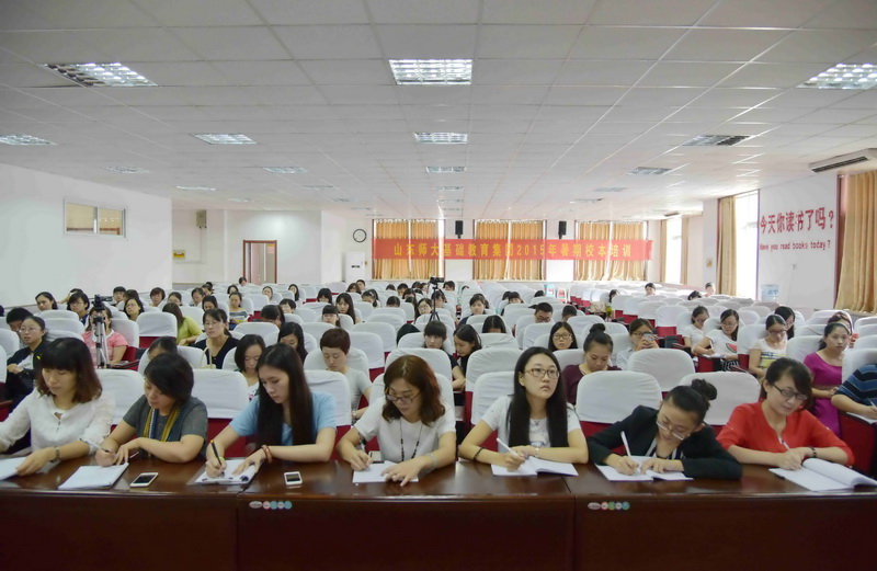 8月26日,伴随着雨后清新的空气和凉爽的秋风,山东师大基础教育集团2015年暑期小学阶段的最后一个专题培训——一年级教师培训在齐鲁学校如期进行。本次培训由齐鲁学校教务处主任孙艳梅主持,齐鲁学校教务处副主任米文丹,附小本部三年级语文组长孔明珠和附小本部二年级数学组长张传祯三位老师分别就汉语拼音教学、班主任管理、学习习惯和兴趣培养三个方面和老师们进行了分享,来自各校区的一百余名一年级教师参加了此次培训。