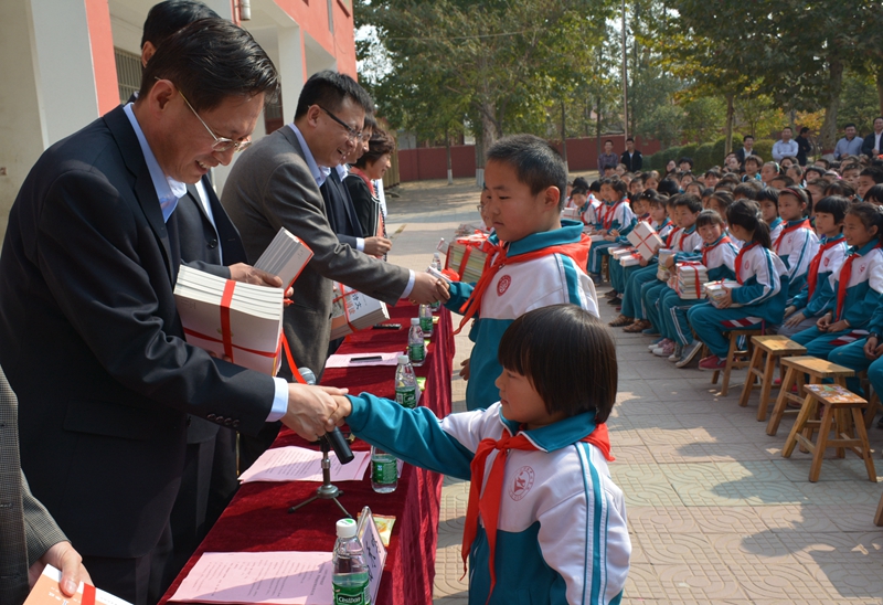 在简洁而隆重的捐赠仪式上,东明县党委副书记刘大为代表东明县委县政府对山东师大基础教育集团领导一行表示热烈欢迎,对集团长期以来所提供的教育帮扶表示诚挚感谢。他指出,基础教育集团为东明教育不仅输入物质资助,更带来理念上的革新,有力激发了当地教育发展内力,期望能与集团保持长远而深入的合作。集团党总支书记李培荣代表集团向在座师生致以亲切问候,他表示,集团将持续发挥自身优势,推动帮扶地区的教育发展,搭建更多教师交流培训的平台,实现两地教师的良性互动,协助当地教师实现教育梦想,鼓励更多学生达成学习愿望。随后集团将特设的“优秀班主任奖励基金”和集团各校园区捐赠的图书等物品赠与当地学校,满足学校需求,用于教师与学生发展。