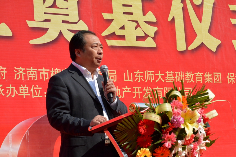 苗禾鸣受邀在仪式上首先发言,向槐荫区政府对集团办学成就给予的肯定表示衷心感谢,他表示,保利中心华府实验学校是集团成立后在济南开启的第二个教育合作项目,学校的成立得到了社会各界的瞩目和关怀,承诺集团将选派优秀管理团队和师资力量对学校现有师资进行科学培训,在课程研发等方面做大胆尝试,致力培养出一批具有山东师大特质的优秀教师队伍,为满足当地民众对优质教育的需求尽最大努力,为槐荫区基础教育品质的提升尽绵薄之力。