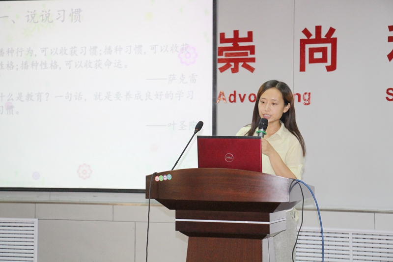齐鲁实验学校的数学老师王伟伟,就倾听、发言、思考、审题、检查等习惯养成给老师们支招,不仅呈现了养成教育的阶段性目标,还列举了许多具有实操性的措施。王伟伟还介绍了课堂观察和调控的方法,提出眼中要有学生,以多元化的激励以及创设游戏化课堂,让学生喜欢课堂喜欢老师。为了赢得家长的信任和配合,王伟伟还建议定期更新日志,与家长愉快有效地交流,以使家长从了解到理解,从而信任并支持老师的工作。