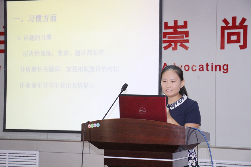 齐鲁实验学校数学组组长崔明雪就“课前学生准备的习惯、听课的习惯、记笔记的习惯、使用错题本的习惯以及如何培养家长的好习惯”等进行经验分享。针对习惯的培养,崔老师特别强调了训练和检查,以便习惯得到很好的落实。