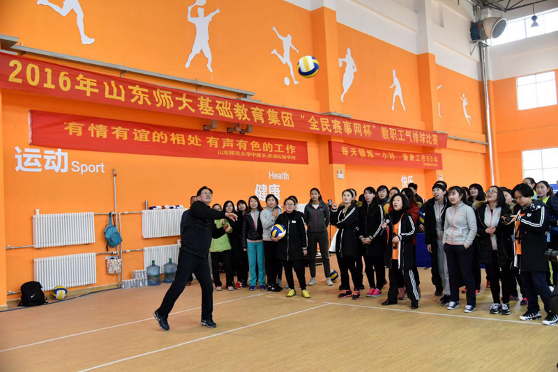 为积极落实开展全民健身运动,丰富教职工文化体育生活,传导“快乐工作、健康生活”的理念,12月3日,山东师大基础教育集团举行了“全民赛事网杯”首届教职工气排球比赛,来自15个校区的260名教职工参加了这一体育赛事。集团本部女队和山师中建长清湖实验学校男队展示出了强大实力,勇捧冠军杯。山东师范大学基础教育办公室副主任范双化参加活动。