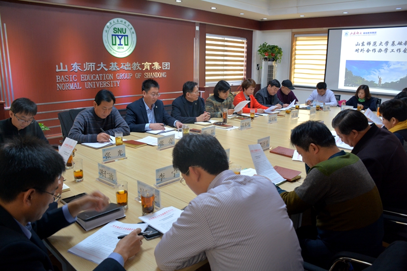 会议由集团合作交流部副部长武艳主持。本次会议围绕着清理对外合作办学项目,规范合作办学行为展开。范双化代表学校基础教育办公室传达了《关于清理和规范基础教育对外合作办学项目的通知》,张磊带领大家学习了《山东师大基础教育集团合作办学管理办法》和中央八项规定的相关内容。