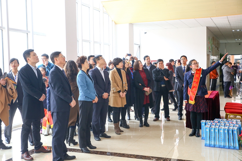 典礼结束后,全体嘉宾跟随孩子们的脚步参观了学校。在小小解说员的引领下,领导及家长们一起走进班级,和孩子们亲切交谈,学生的活泼、可爱以及小解说员精彩的表现赢得了在场全体人员的阵阵掌声。一个个自信大方的小小解说员把自己的班级和学校介绍的条理清楚又生动有趣,他们落落大方、字正腔圆、举止高雅、彬彬有礼,颇有一点小主持人的架势。在场的所有嘉宾对他们的那股认真劲儿所感染,同时,也对学校能在开学仅仅两周时间取得如此卓有成效的教育效果表示欣慰。