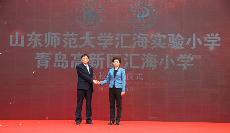 2017年2月28日,广受社会关注的青岛高新区汇海小学暨山东师范大学汇海实验小学成功举行了新校落成典礼。高新区工委委员、管委副主任于惠霞及相关单位、部门、各社区负责人,山东师大基础教育集团常务副理事长、总经理苗禾鸣及山东师大基础教育集团各直属校园区校长、园长,汇海小学全校师生和部分家长代表参加了典礼,共同见证新校的落成与启用。