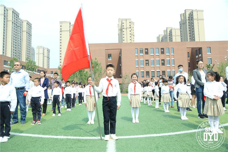 伴随着嘹亮的出旗曲,少先队旗手和护旗手迈着整齐的步伐,手握飘扬的队旗拉开了本次入队仪式的序幕。