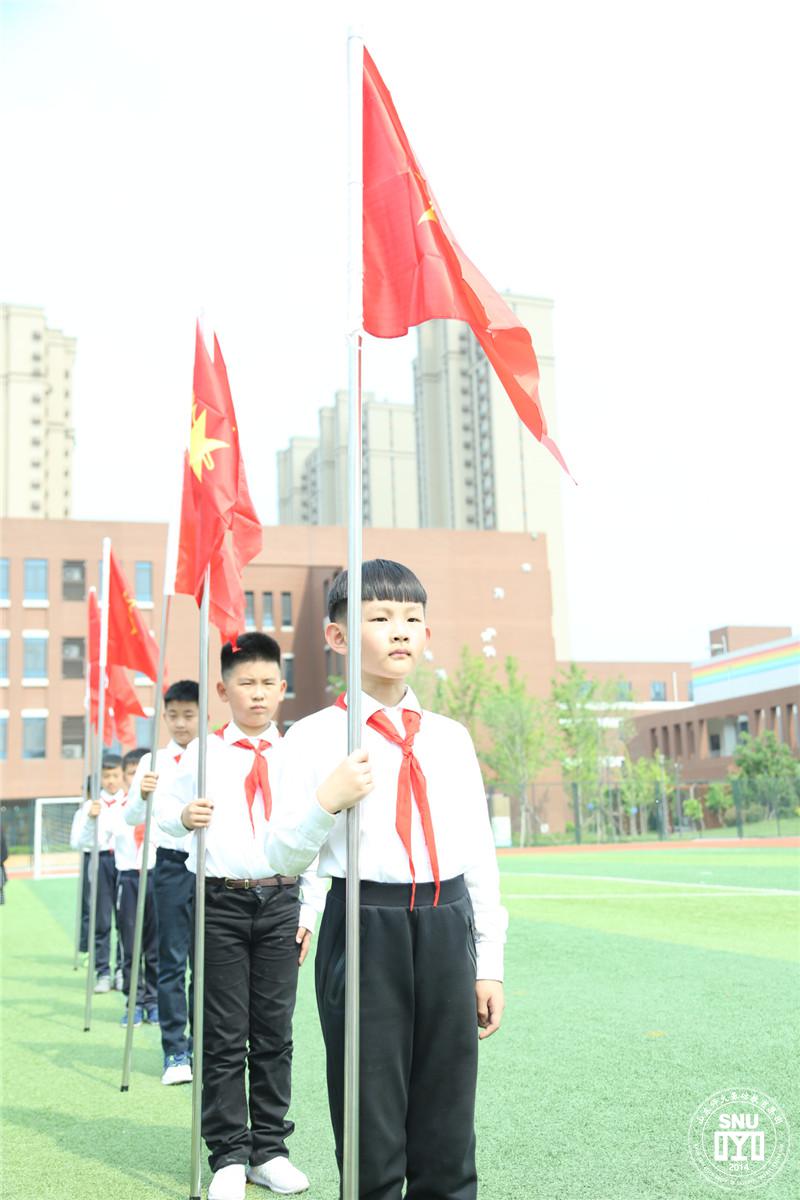我是中国少年先锋队队员,我在队旗下宣誓......宣誓声音让人热血沸腾。一(1)中队张荫心代表新队员发言,他表示将努力做最好的自己,让红领巾更红,让队旗更亮。伴随着新少先队员的诞生,一年级各中队也随之成立了!看,同学们从党支部书记纪立孟手中接过队旗时是多么严肃认真。从此,这面庄严且沉甸甸的队旗便永远地飘扬在小小少先队员们的心中。