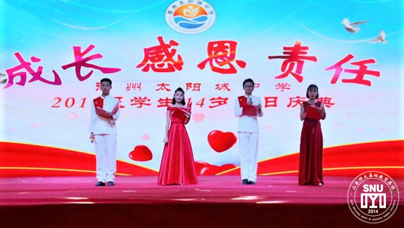 健全人格的塑造来自持之以恒的育德于教。山师太阳城实验中学把课堂作为德育主阵地,开设主题课程,如入学课程、青少年成长课程、节日主题课程等。去年,初三级部举办“十四岁生日庆典”,以“成长·感恩·责任”为主题,邀请家长为孩子们写一封信,通过仪式感,引导学生将“感恩”转化为行动,在行动中提升品德。