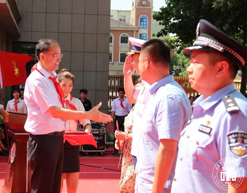 花儿的成长离不开肥沃的土地,花儿的开放更离不开温暖的阳光。孩子们的健康快乐成长,离不开社会各界的关心和爱护。历山双语学校副校长于清萍宣读聘任法制副校长、法律顾问和校外辅导员的聘任决定。山东师范大学党委常委、副校长,山东师大基础教育集团理事长王洪禹先生为郎卫华、石岳峰、王鹏和杨芳颁发聘书。感谢他们在孩子成长路上的指引,引导他们走进宽阔的知识海洋,相伴一路前行。