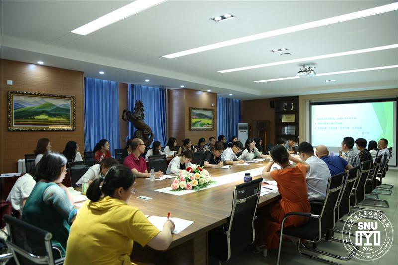 在这充满生机的炎炎夏日,6月11日,山东师范大学祥泰实验学校、齐鲁实验学校、泰安奥校、长清湖实验学校四校区初中语文联合教研活动在祥泰实验学校举行。活动特邀山东省语文特级教师、全国优秀语文教师于立国参加,山东师大基础教育集团教学科研部部长马刚、四校区领导及老师共同参加此次教研活动。