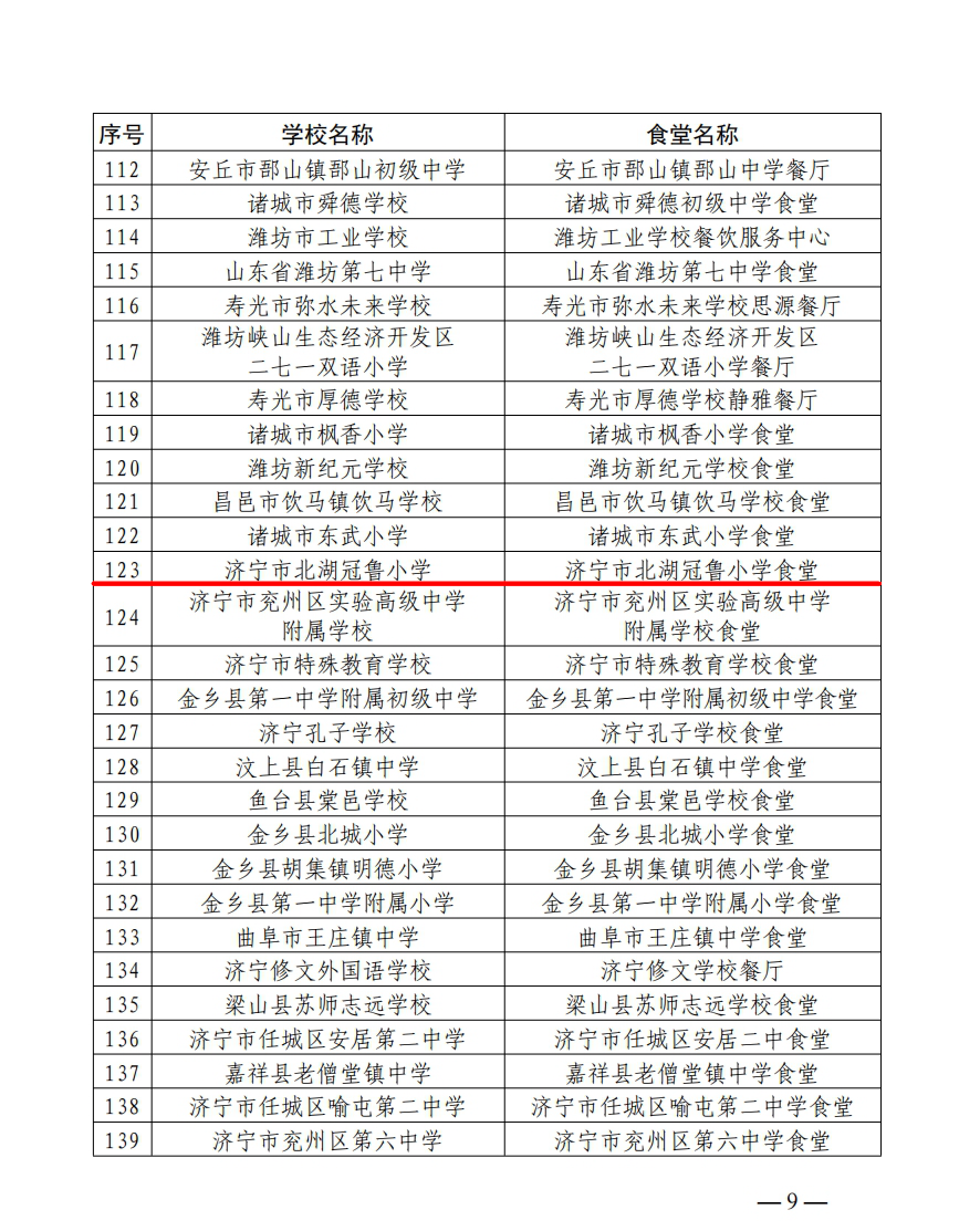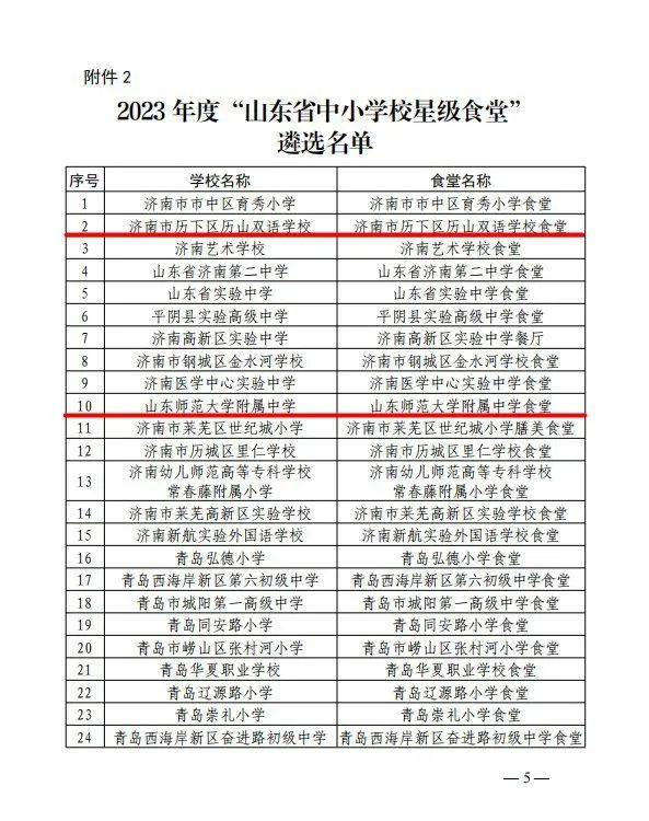山东师范大学基础教育集团成员校山东师范大学附属中学、山东师大基础教育集团直属校历下区历山双语学校、济宁市北湖冠鲁小学获“山东省中小学星级食堂”称号。