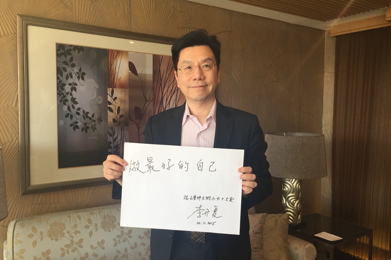 10月11日,值此山东师大附小六十周年华诞之际,创新工厂董事长兼首席执行官李开复、当当网CEO李国庆为我校送来祝福。(撰稿、摄影:宣传交流处)